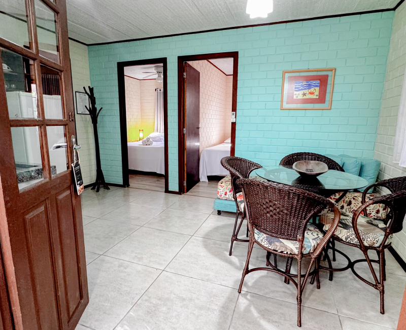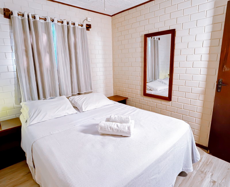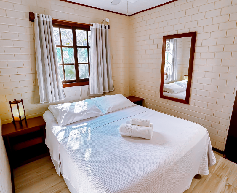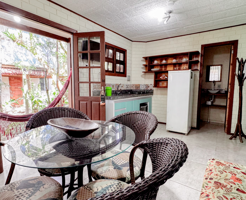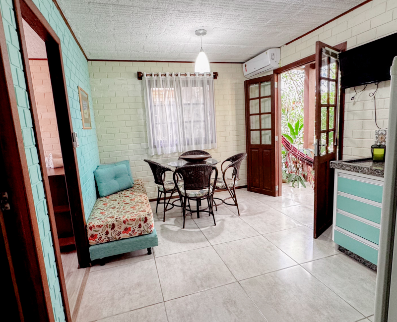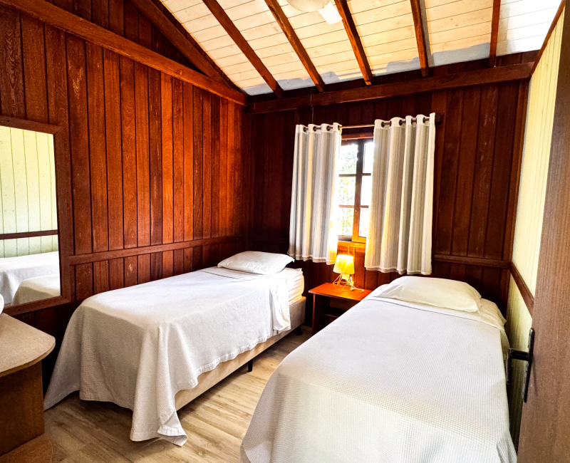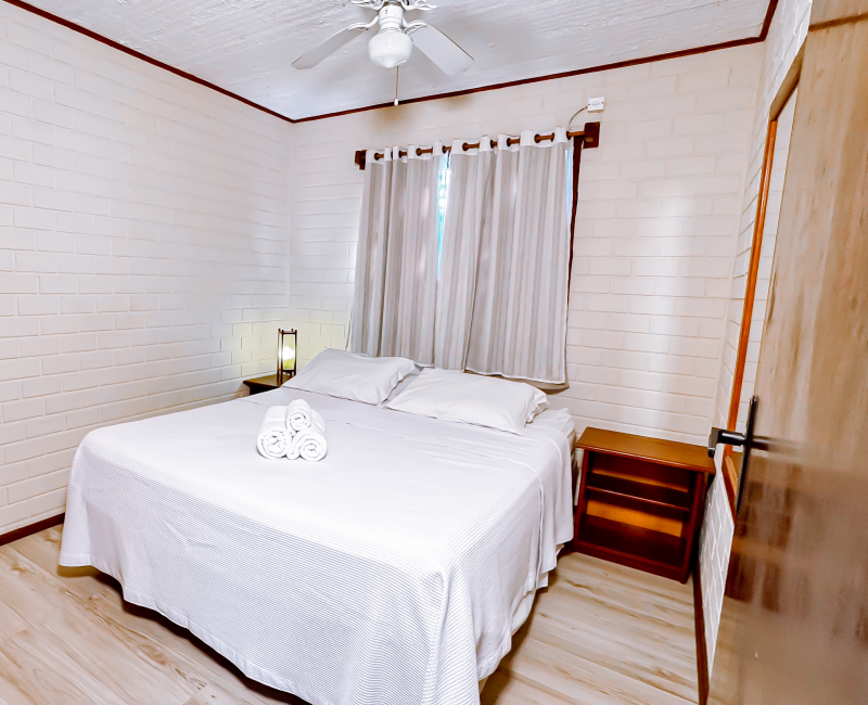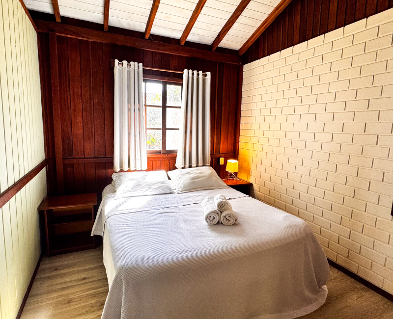 Perfeito para quem busca conforto e aconchego em meio à natureza. Com capacidade para até quatro pessoas, esse chalé conta com dois quartos climatizados, sala de estar com TV, cozinha equipada para preparar suas refeições favoritas e uma charmosa varanda com rede, ideal para relaxar sentindo a brisa da Guarda do Embaú.