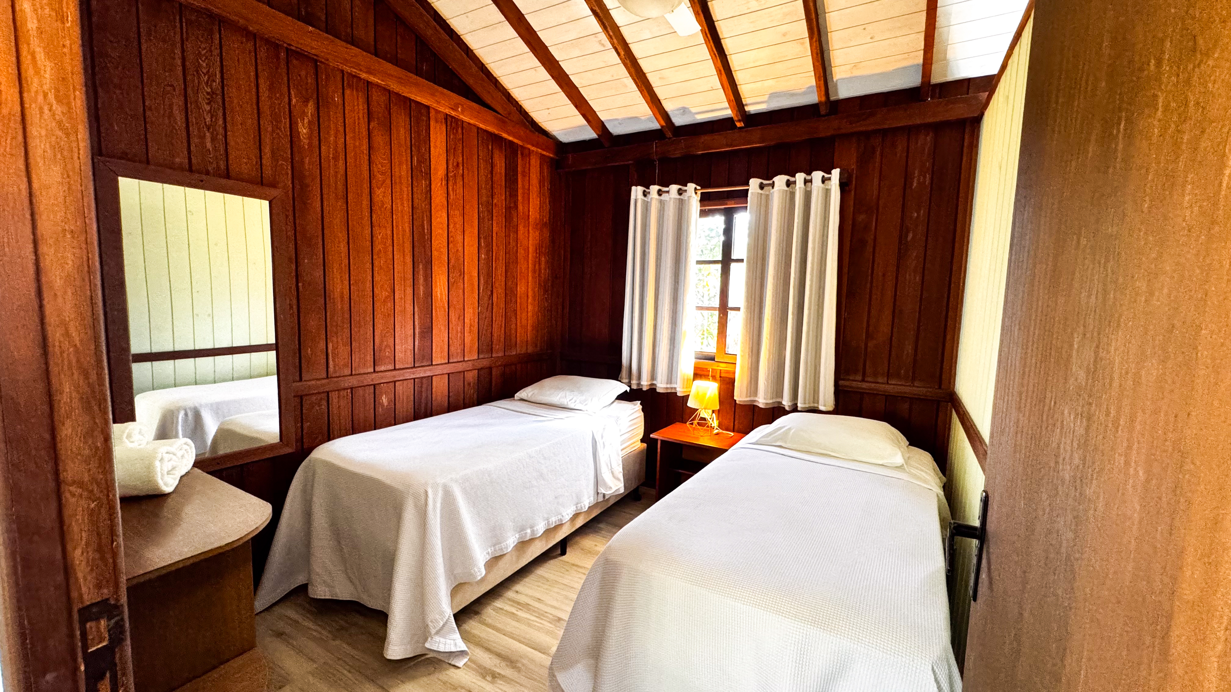 Perfeito para quem busca conforto e aconchego em meio à natureza. Com capacidade para até quatro pessoas, esse chalé conta com dois quartos climatizados, sala de estar com TV, cozinha equipada para preparar suas refeições favoritas e uma charmosa varanda com rede, ideal para relaxar sentindo a brisa da Guarda do Embaú.